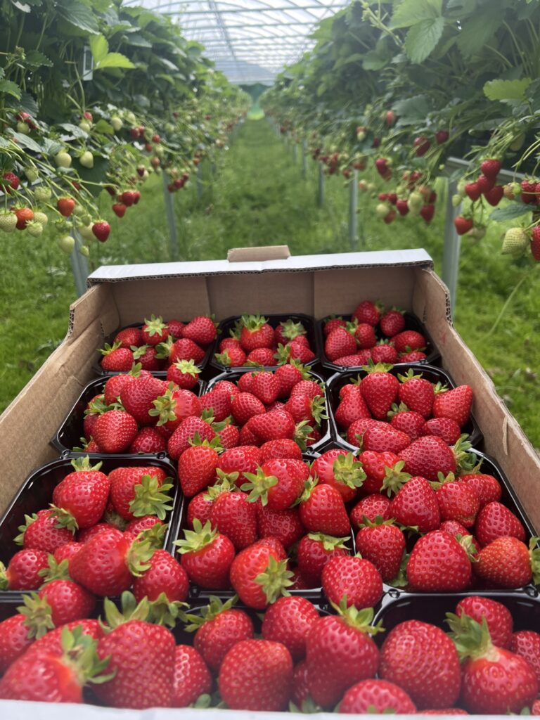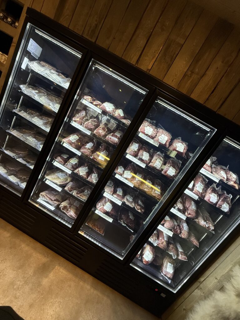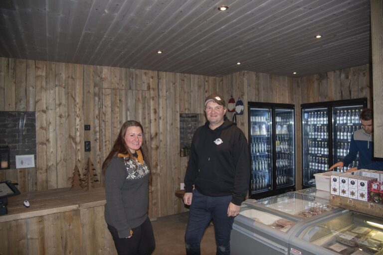 Wir verarbeiten Fleisch von unseren eigenen Tieren und von Partnern in Finnmark zu Burgern, Würsten, Wurstwaren, Aufschnitt und anderen Spezialitäten – alles mit Sorgfalt und Stolz hergestellt. Außerdem werden auf dem Hof in Gewächshäusern „arktische Erdbeeren“ angebaut.