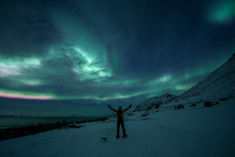 Lyngstuva offers open views towards the north and northwest, where northern lights activity often first appears. With clear skies, conditions can be very good for viewing the aurora. However, if the weather is unsettled, areas further inland in Lyngen often have a drier climate and a better chance of clear skies.