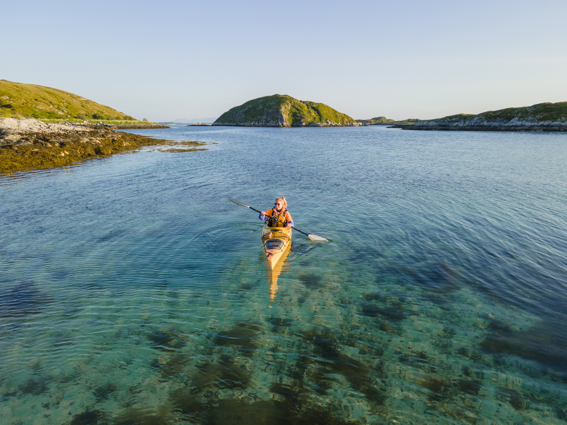 Fjords and sheltered waters provide good conditions for kayaking, paddling, and swimming.